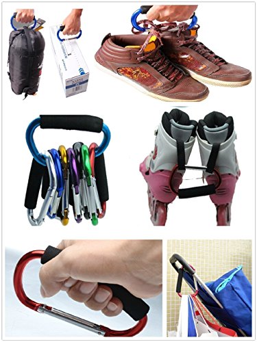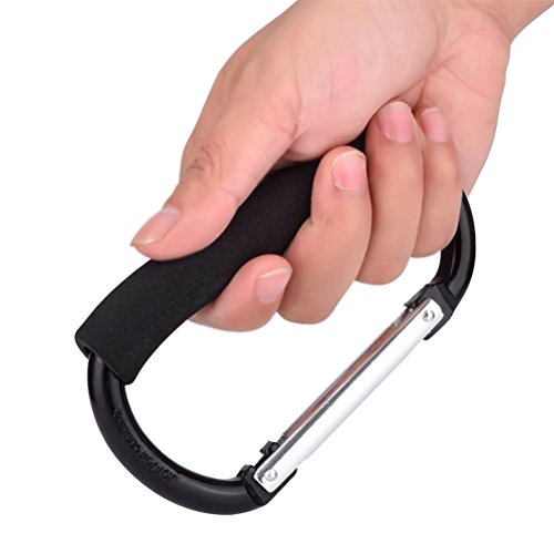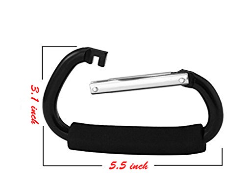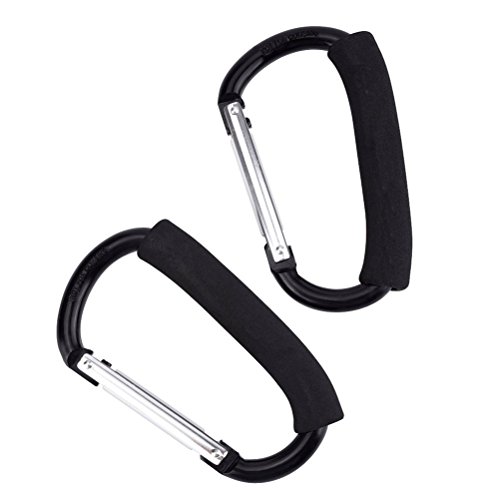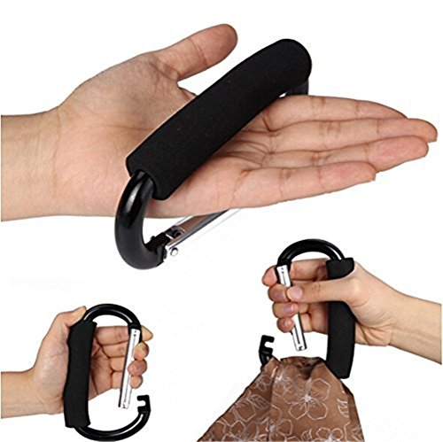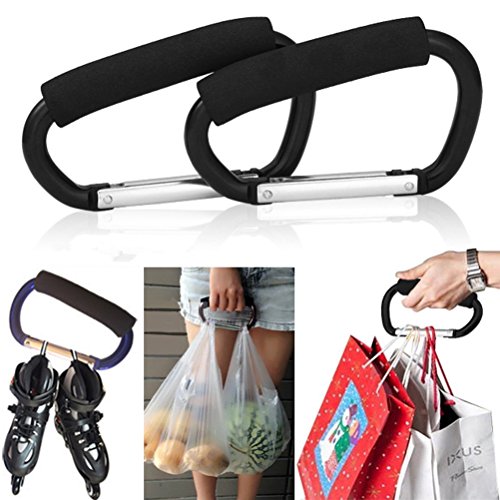 Pack of 2 Grocery Bag Holder Handle Carrier Tool Grip Your Tote,Handy Stroller Hooks, Multi Purpose Mommy Hooks, Pushchair Shopping Bag Hook Carabiner (Black)