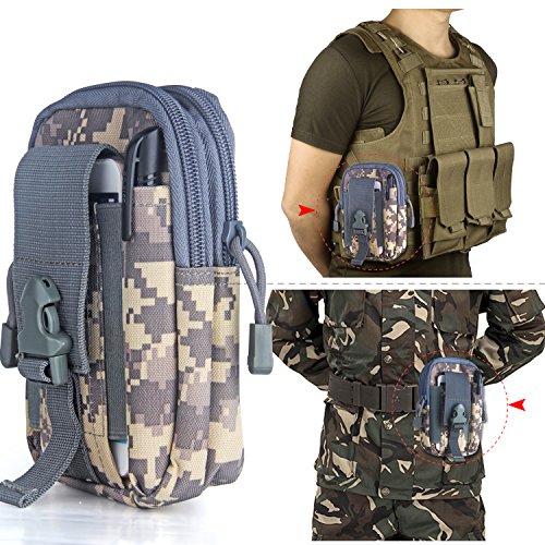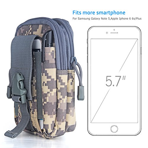 - LARGE CAPACITY: this molle utility pouch is designed with two zipper compartments, one buckled phone pocket, one pen holder. can holds camera, key, wallet, pen, knife, notebook, small tools, cellphones large to 5.7" (including iphone 6 6s 7 plus Samsung Galaxy Note 5 4)