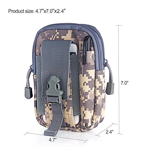 - HANDY: with perfect size 4.7 X 7.0 X 2.4 inches (WxHxT), you can carry this tactical pouch easily for a hiking, daily walking, travelling, camping and so on