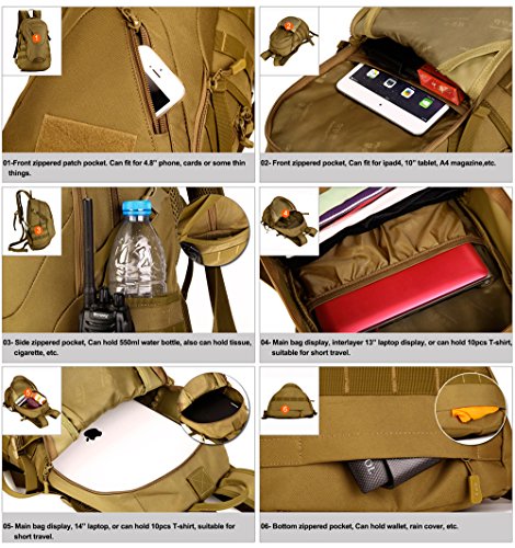 -. Title : Huntvp Military MOLLE Backpack Rucksack Gear Tactical Assault Pack Student School Bag 20L for Hunting Camping Trekking Travel