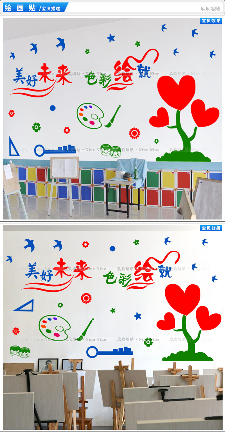 墙贴学校少年宫绘画画美术培训班教室美术室画室墙面装饰贴纸贴画
