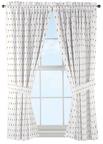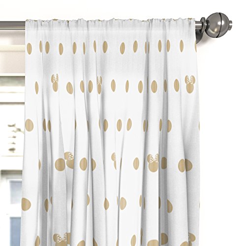 Studio : Jay Franco and Sons, Inc. Publisher : Jay Franco and Sons, Inc. Binding : Kitchen Product Description Transform your bedroom windows with decorative, bright and fun Disney Minnie mouse black gold Dots curtain draperies. Perfect for the bedroom, kid's room or nursery, these curtains will certainly make them smile. Set includes two rod pocket curtain panels and two coordinating tie backs. Tie backs allow you to easily open and close curtains to create privacy and control how much light gets into the room. Layer on sheer panels behind these curtains for a layered look and privacy. Sheer panels not included. Each rod pocket panel measures 42" x 63". total curtain width is 84" wide. Fits standard 1" curtain rod. Curtain rod sold separately. 100Percent soft microfiber polyester. Machine wash gentle cycle, tumble dry, do not bleach. Cool iron if needed. Imported. 0
