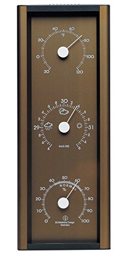 -. Feature : Anodized Aluminum Housing with 3 Analog Weather Instruments / Accurate Weather Forecasting / Aneroid Barometer, Thermometer, Hygrometer to Measure Humidity / Maximum altitude for barometer operation is 3,800 ft. above sea level / Length: 11 in., Width: 4 in., Depth: 1.5 in.