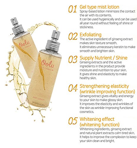 It is multi-functional mist providing high nutrition of ginseng and purifying skin purification using gold powder. It can be also used as nutrition sleeping pack at night when applied thick.