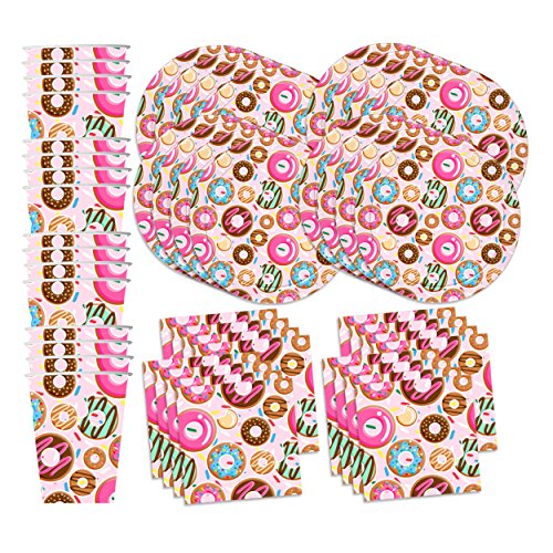 -. Title : Donut Shoppe Birthday Party Supplies Set Plates Napkins Cups Tableware Kit for 16