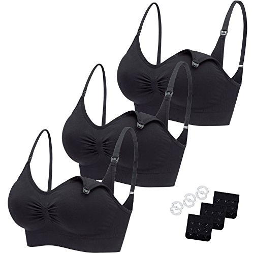 -. Feature : SUITABLE FOR MOTHER AND BABY:Our design ideas are all for mom and baby,most important for pregnancy or nursing is comfortable and convenience,not only at wearing experience but also at shopping and service process.Stellafash nursing bra features wireless cup,adjustable straps,removable padding,one-step feeding clasp.We offered 3 colored bras in different group for choosing,3 bras/pack,include 3 color matched extender,3 fastener,no need to purchase any more accessories,all you need are in pack. / DESIGN FOR NURSING:Stellafash nursing bra features,WIRELESS design makes the bra very soft,it don't stress your rib,the elastic fabric give enough supporting to breast,it will keep the shape after washing, REMOVABLE PADDING,easier to wash the padding,you also can remove it to wear as your habit.ONE-STEP FEEDING CLASP you can take off the cup separately by one step and one hand,the breastfeeding get easier and no awkward.The widen side band will conceal armpit fat,and keep close fit. / SELECTIVE MATERIAL: Stellafash nursing bra choose 92%Nylon+8%Spandex, this fabric is very smooth and gentle to your skin, no any irritation, the good elasticity will keep the bras shape and close fit to your body and make the bras more durable after repeated washing, furthermore, this fabric is also very breathable, you can wear it to sleeping.it also with great pilling and fading resistance, there will be no pilling and keep colored in all bras' life time. / COST-EFFICIENT: Stellafash nursing bra is easy to wash, removable padding allows you to wash padding separately in breastfeeding period.The wireless design and its material avoid deforming in repeated washing.Along with the packs there are 3 color matched extender and 3 fastener,the extenders allows the bras growing with your changing figure since pregnancy to breastfeeding period.Use Fasteners to hide the straps as racer-back.All you need are in packs here.You will not regret to choose it. / CUSTOMER SERIVE: If you have any question or sestion to our products, please contact us freely, we will do anything we can do to make it better. It will be always welcome to share your experience of our products. Furthermore, Stellafash products support replace/refund UNCONDITIONALLY service.