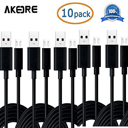 Micro USB Cables , AKEDRE® 10-Pack (3FT) Premium High Speed USB 2.0 A Male to Micro B Sync Data & Charge Cable for Samsung, HTC, Motorola, Sony, Nokia, Android Phones (Black)