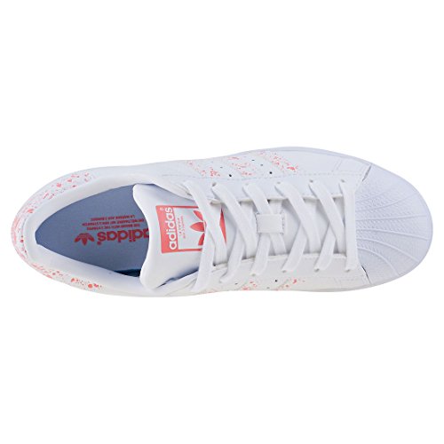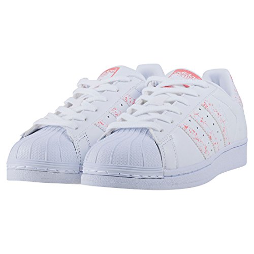 Binding : Apparel Product Description The Womens Superstar from adidas combines a Leather upper with a durable Rubber sole. These Trainers feature Lace-up fastening, cushioned insole and Synthetic Textile lining. Finished with adidas branding, the style BY2951 comes in a White Pink colourway. 0