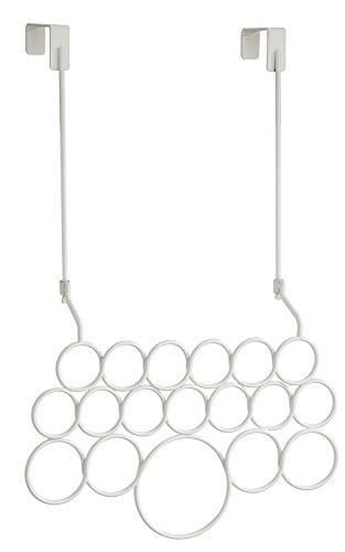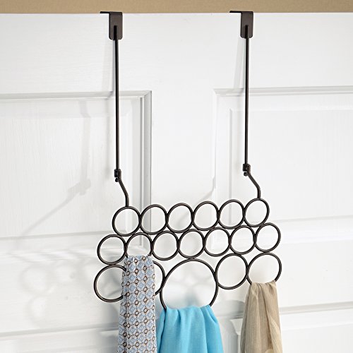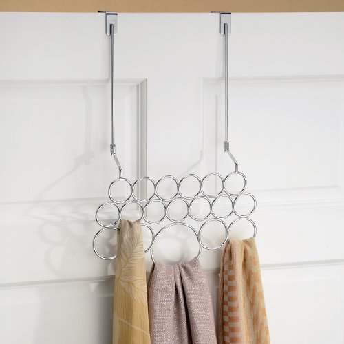 -. Feature : Chrome finish 18 loop scarf holder / No permanent installation / Fits most standard size interior doors / Space saver / Great for belts and ties