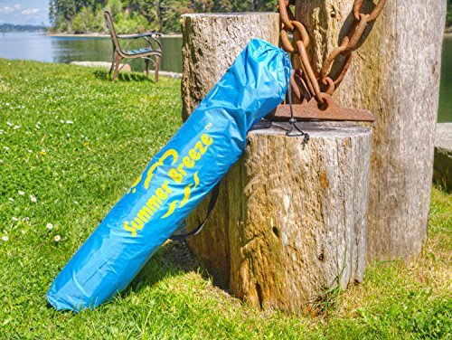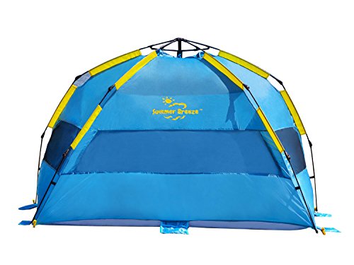 the summer breeze beach tent is a comfortable 87" wide, 47" high and 49" deep and provides 50+ upf protection from the sun, wind and rain.