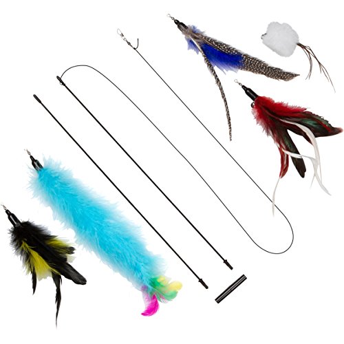 The 5 PACK VARIATION OF FEATHER TOYS OFFERS YOUR CAT DIFFERENT TOYS TO INTERACT WITH. Enjoy an unique assortment type of feather toys each with small bell.