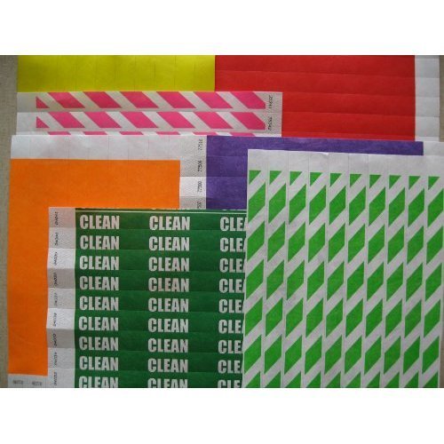 -. Feature : 150 Randomly Selected 3/4" & 1" Tyvek Wristbands / waterproof, durable, great one time use / made from Dupont-Tyvek materials / You will not get the bands pictured. We are overstocked.