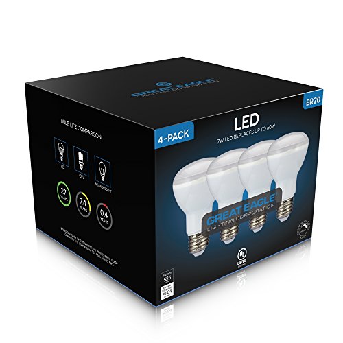 Great Eagle (4-pack) LED BR20 or R20 Dimmable Light Bulb. 7W (60W) UL Listed Bright White 3000K Light Bulb for Recessed, Track, and Pendant Lighting Fixtures - USA Seller