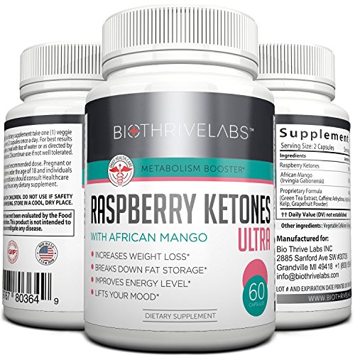 -. Binding : Health and Beauty -. Brand : Bio Thrive Labs -. Feature : Improves Your Weight Loss Efforts. Natural Fat Burn Supplement. / Pure Raspberry Ketones, African Mango and Green Tea. Extra Potent Energy Formula. / No additives or fillers. Only Pure Quality Supplement. / Made in USA. GMP approved. 60 Vegetarian Pills / Lose Weight or Your Money Back! Buy Yours Now, Risk Free. -. IsAdultProduct : 0 -. Label : Bio Thrive Labs -. LegalDisclaimer : *These statements have not been evaluated by the Food and Drug Administration. This product is not intended to diagnose, treat, or cure any disease. -. Manufacturer : Bio Thrive Labs -. MPN : Bio Thrive Labs Raspberry Ketone -. PartNumber : Bio Thrive Labs Raspberry Ketone -. ProductGroup : Health and Beauty -. ProductTypeName : HEALTH_PERSONAL_CARE -. Publisher : Bio Thrive Labs -. Studio : Bio Thrive Labs -. Title : Raspberry Ketones, Pure Weight Loss Formula! With Green Tea and African Mango - No Additives - 100% Satisfaction Guarantee