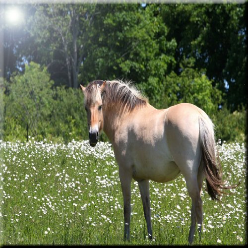 Rikki Knight RK-6intilec-8989 6" X 6" Norwegian White Fjord Horse on White Flower Field Design Ceramic Art Tile