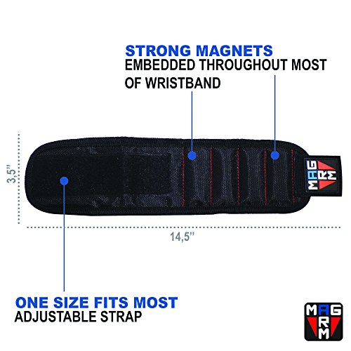 - DEPENDABLE QUALITY – Our magnetic tool holder is made to last through rigorous use. Velro adjustable wrist strap conforms to all wrist sizes. Strong magnets inside wristband hold small parts readily available just when you need them.