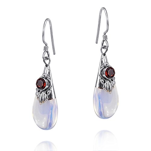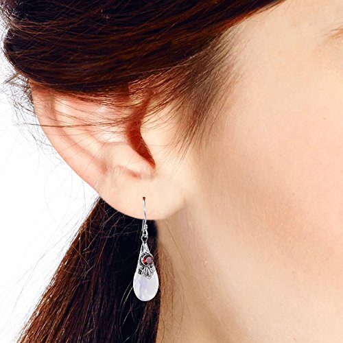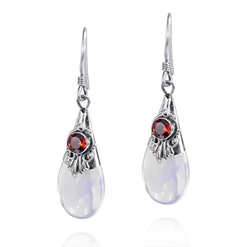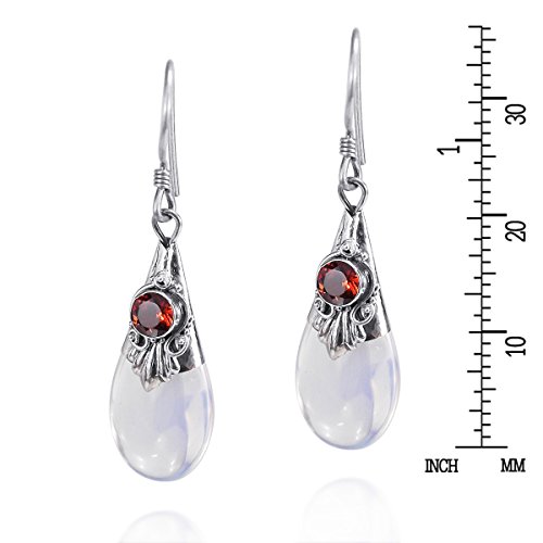-. Feature : Material: Sterling Silver | Trademark: Stamped 925 / Stone: Synthetic moonstone, Garnet | Weight: 2.9 grams / Design Measurements: 9 mm (0.35 in) wide x 36 mm (1.42 in) (including hook) / Stone size: 8 mm (0.31 in) wide x 11 mm (0.43 in) long / Includes an original AERAVIDA jewelry gift box. Perfect for gift giving to someone special or keep for yourself!