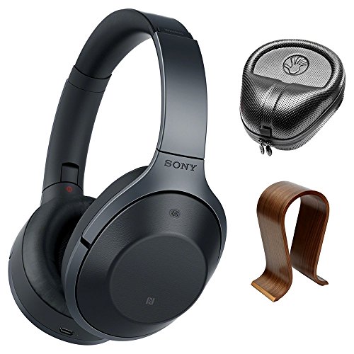-. Title : Sony MDR-1000X/B Black Hi-Res Bluetooth Wireless Noise Cancelling Headphones w/ Universal Wood Headphone Stand & Slappa HardBody PRO Full Sized Headphone Case (Black)