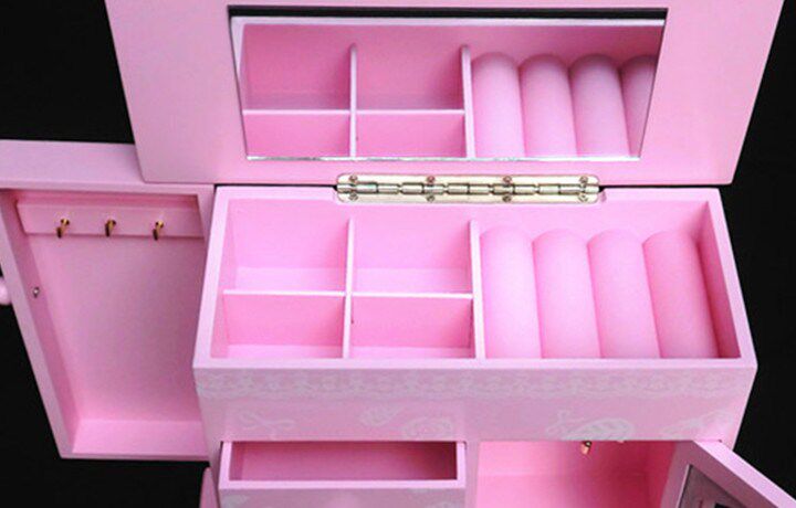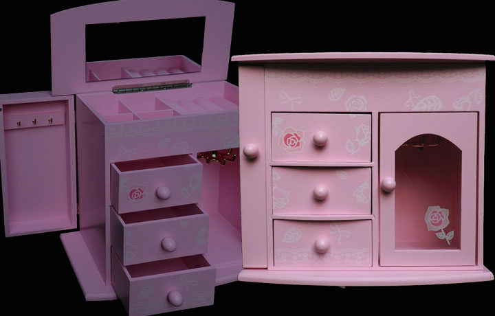 二.粉色玫瑰首饰盒 木质带镜子(尺寸见图)