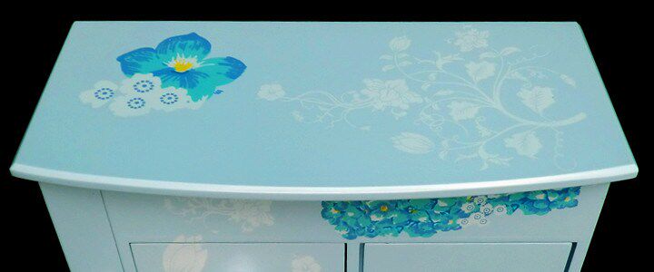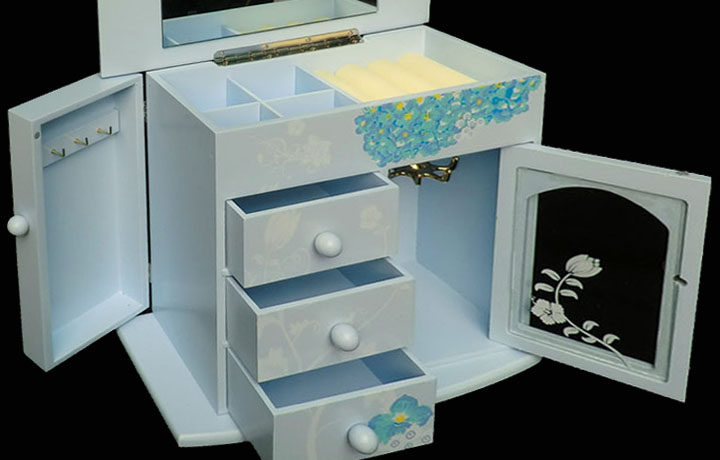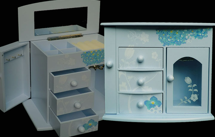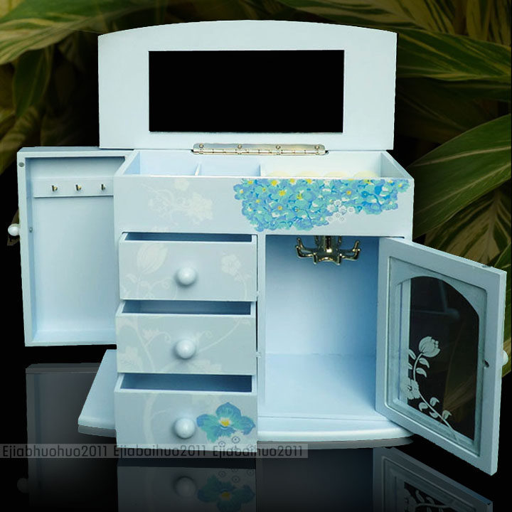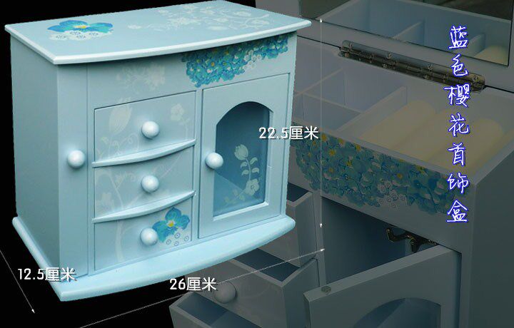一.蓝色兰花首饰盒 木质带镜子(尺寸见图)