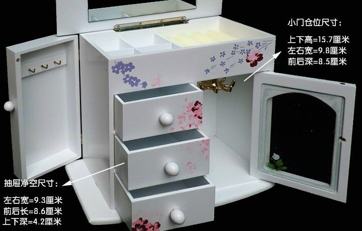 三.白色樱花首饰盒 木质带镜子(尺寸见图)