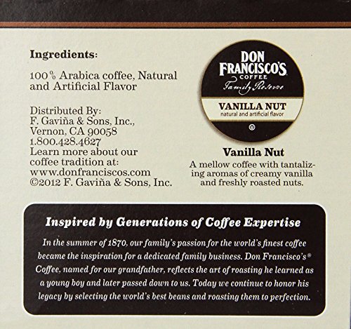 -. Feature : Don Francisco's / Family Reserve / Vanilla Nut Single Serve K Cup Coffee / 12 Count, 4.02oz Box / Pack of 3