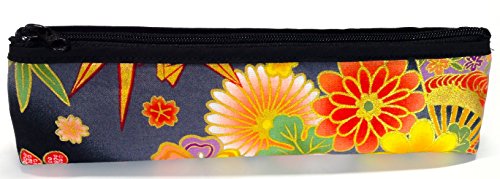 Pencil Case, Stationery Pouch Bag Case, Japanese Pattern, Black