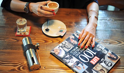 Our manual grinder guarantees high quality and precision as it consists of a high quality brushed stainless steel body, a durable ceramic conical burr and a measuring base (no scoops required anymore). Simply adjust the grind size of your coffee beans by turning the handle clockwise or counterclockwise and let the best part of the coffee reach your cup by getting the exact coarseness you desire.