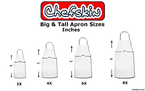 Chefskin Adult Apron White in lightweight 65/35 Twill, Fully Adjustable on neck and ties center pocket all sizes (1, Big & Tall 4X)