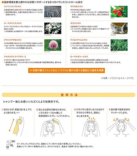 Ginger root extract, Mayorana leaf extract, Calendula flower extract, Camomile flower extract, Fuyu Bodaiju flower extract, Roman chamomile flower extract, Yagurumagiku flower extract, Seiyosugirisou Flower / leaf / stem extract, Wallemokow extract, panthenol, retinol palmitate,