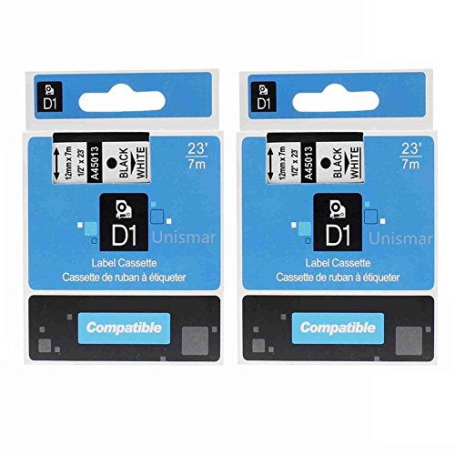 Unismar 2 Pack Label Tape Compatible for DYMO D1 45013 S0720530 Black on White 12mm (1/2") Width 7m (23 ft) Length (US-D45013 2PK)
