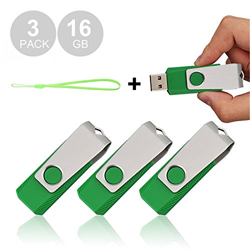 TOPSELL 3pcs 16GB USB Flash Drives Flash Drive Fold Storage Thumb Stick Memory Stick Swivel USB 2.0 with Waistband (16G, 3PCS, Green)