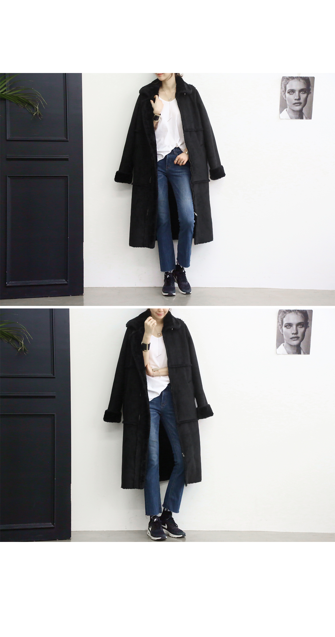 퍼 안감으로 보기만해도 따뜻함이 느껴지는 롱무스탕 소개할게요.