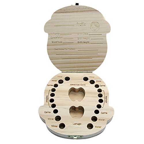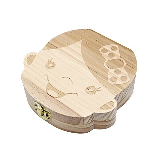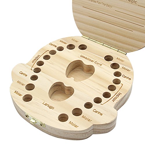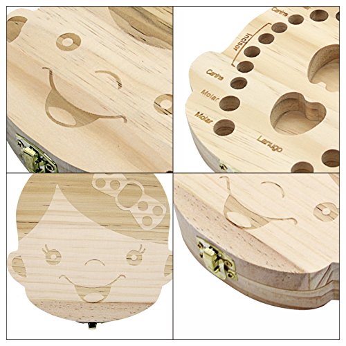 Warmoor Baby Tooth Box, Milk Teeth Wood Case Storage Keepsake Organizer Deciduous Souvenir (girl)