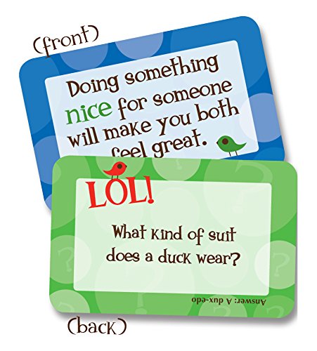 Lunchbox Love® - positive notes and silly jokes for your child's lunchbox, backpack, binder, or pillow. We all want to stay connected with our kids even when we can't be with them. Lunchbox Love® is an easy yet meaningful way to share love and happiness throughout the school day. Positive words on the front (e.g Believe in yourself!) inspire while fun jokes (e.g., Why do hummingbirds hum? They forgot the words) on the back entertain.