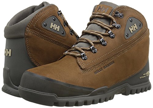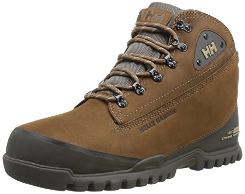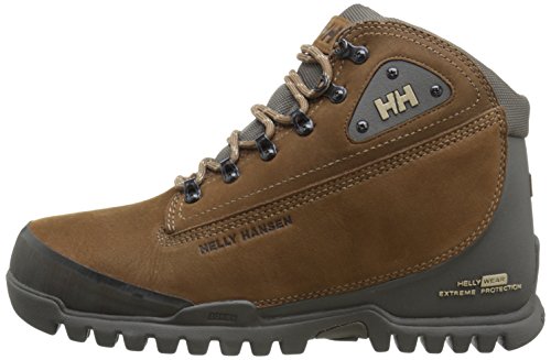 Amazon.com This rugged Knaster 3, high-tech hiking boot from Helly Hansen is both good-looking and comfortable. Constructed from waterproof leather, the boot features a dense EVA midsole for support, a rubber bumper around the toes for protection against wear, and a durable and high-grip rubber outsole to help maneuver tough terrains. A breathable, padded insole keeps your feet feeling fresh all day for non-stop action. 0