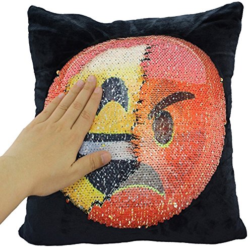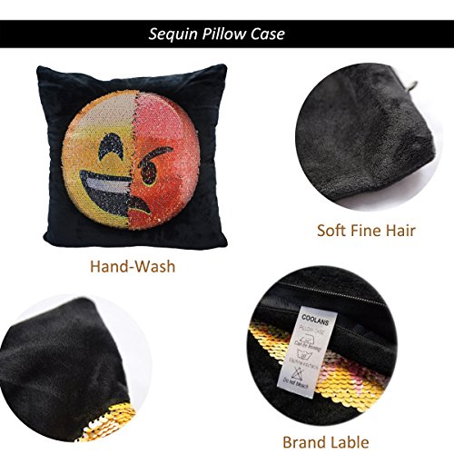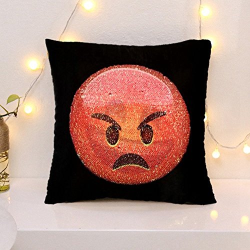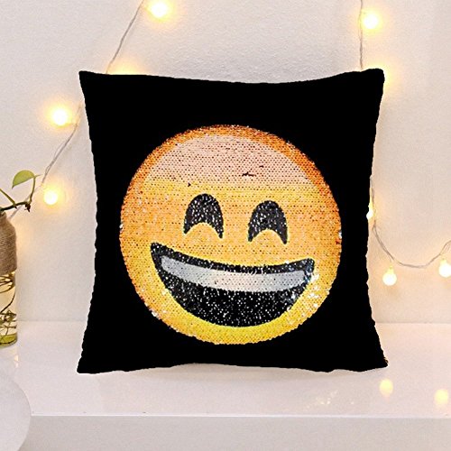 Emoji Sequin Pillow Case -- Size: 16*16 inch/40*40 cm; Materials: 85% high quality Soft Fur,15% Sequins.(NOTE: Recommend Hand-Wash in order to protect the sequins)