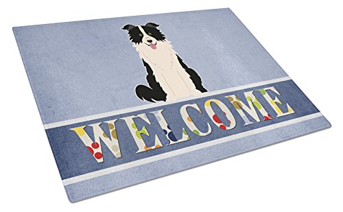 Caroline's Treasures Border Collie black White Welcome Glass Cutting Board Large, Multicolor