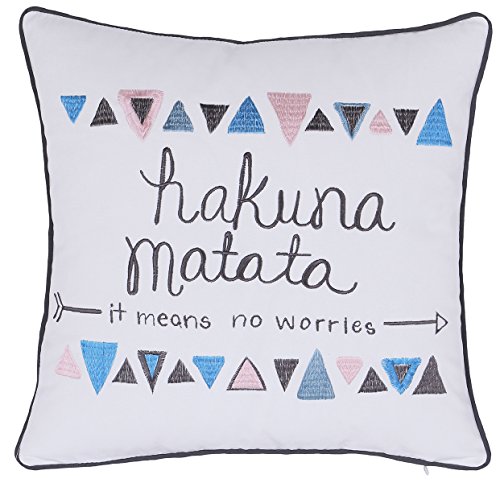 ADecor Hakuna Matata Pillowcase Embroidered Pillow cover Teen Funny Decorative Pillow Standard Cushion Cover Gift Love Couple Wedding P314 (18X18, Ivory)