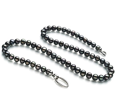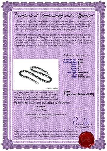 -. Title : Joyce Black 8-9mm A Quality Freshwater 925 Sterling Silver Pearl Necklace