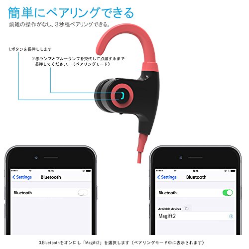 -. Feature : 有線にも劣らない高音質を!ランニング中でも快適な高音質を無線であなたにお届けします。 / 激しい運動でも外れにくいデザイン。スポーツ中の汗や水しぶきに強い防滴仕様、スポーツに最適bluetooth イヤホンです。 / 人間工学に応じて設計により作られたデザイン性に恵まれています。品質の高いソフトシリコン使用で長時間の装着による負担や痛みなく、しっかりと安定した気持ちいいフィット感を持つiitrust Magift2 スポーツ Bluetooth イヤホン。 / しっかりと音に厚みがあって高域はシャリつくことなく自然に音を楽しむことが出来ます。 ハイレゾ音源も再生可能でロックや女性アーティストの楽曲がもの凄く綺麗にクリアで鮮明に聴こえます。 / CVC 6.0 ノイズキャンセルの仕組みで、外部への音漏れが少なく、周囲の人が不快に感じるシャカシャカ音が非常に少ない構造となっているため、音楽を程よく楽しむ音量では周囲の人には何も聞こえず迷惑に思われる事もない。