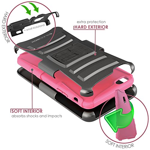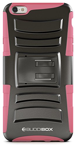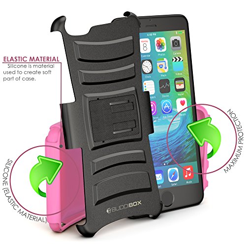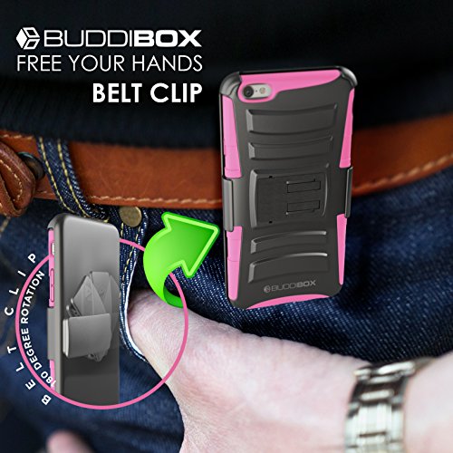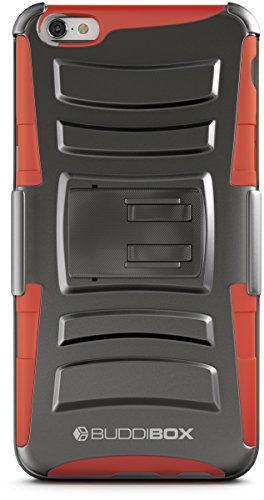 The BUDDIBOX impact armocase series holster combo case offers a soft shock-absorbing silicone inner sleeve + impact-resistant hard polycarbonate shell back cover providing the maximum protection throughout your busy day. It enables you to keep your phone in a like new condition while preserving its looks and features.this holster is not only durable, long lasting, but also equips the cell phone with stylish looks. It has a 180 degrees turning swivel as a clip allowing you to have your phone facing vertical or horizontal.the built-in foldable kickstand allows you to watch movies, video, and pictures from a desirable view. A case like this has all the combined beauty with functionality by utilizing high-quality materials and fine craftsmanship. Protect your expensive device with buddibox armocase impact series holster combo case!Feature