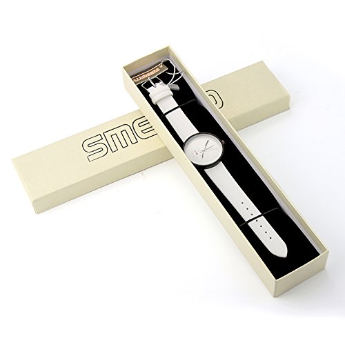SMEETO Simple Quartz Watch Women Fashion Analog Decoration Dial Leather - White