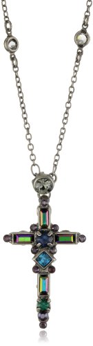 -. Title : Sorrelli Crystal Baguette Silvertone Cross Pendant Necklace