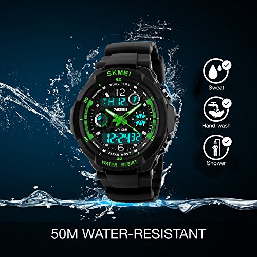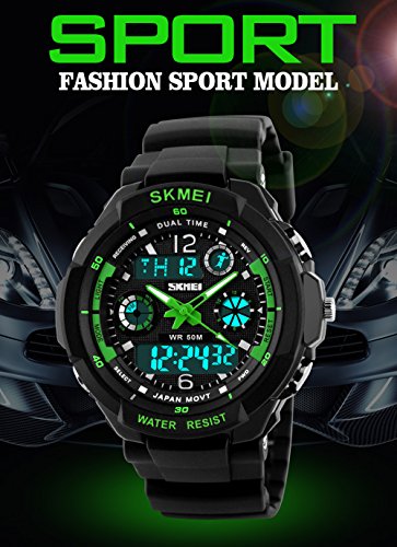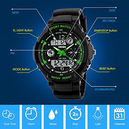 • MULTI-FUNCTIONAL: Design Calendar Date Window, Dual Time Display, Alarm, 50M Waterproof, EL Back Light Display, Shock Resistant, Stopwatch