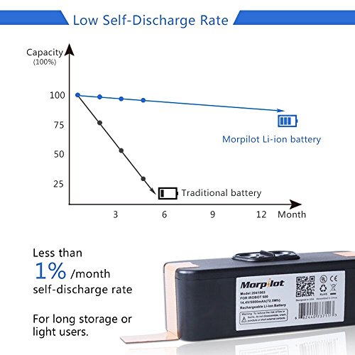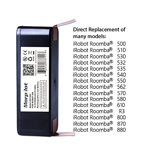 -. Binding : Kitchen -. Brand : Morpilot -. Feature : Fully charge before use (at least 12 hours). / Make sure to run this battery fully down a couple of times to properly condition it. Best to unplug the docking station and push the docking button in insure complete depletion / Easy install and it fits perfectly. Keep your Roomba cleaning up all the cat hair, cat litter and whatever else was on the floor / Works as Genuine Parts.Easy to charge and connect APS battery compatible with all Roomba 500 & 700 & 800 series 500 510 530 532 535 540 550 560 562 570 580 610 R3 800 870 880 Vacuum Cleaner / Safeguard features against incorrect voltage, short circuit, internal overheating -. IsAutographed : 0 -. Label : Morpilot -. Manufacturer : Morpilot -. ProductGroup : Home -. ProductTypeName : HOME -. Publisher : Morpilot -. Studio : Morpilot -. Title : [UL&CE Approval]Morpilot? Battery for Irobot Roomba 500 510 530 531 532 533 535 536 540 545 550 552 560 562 570 580 581 585 595 600 620 630 650 660 700 760 770 780 790 800 870 880 80501R3