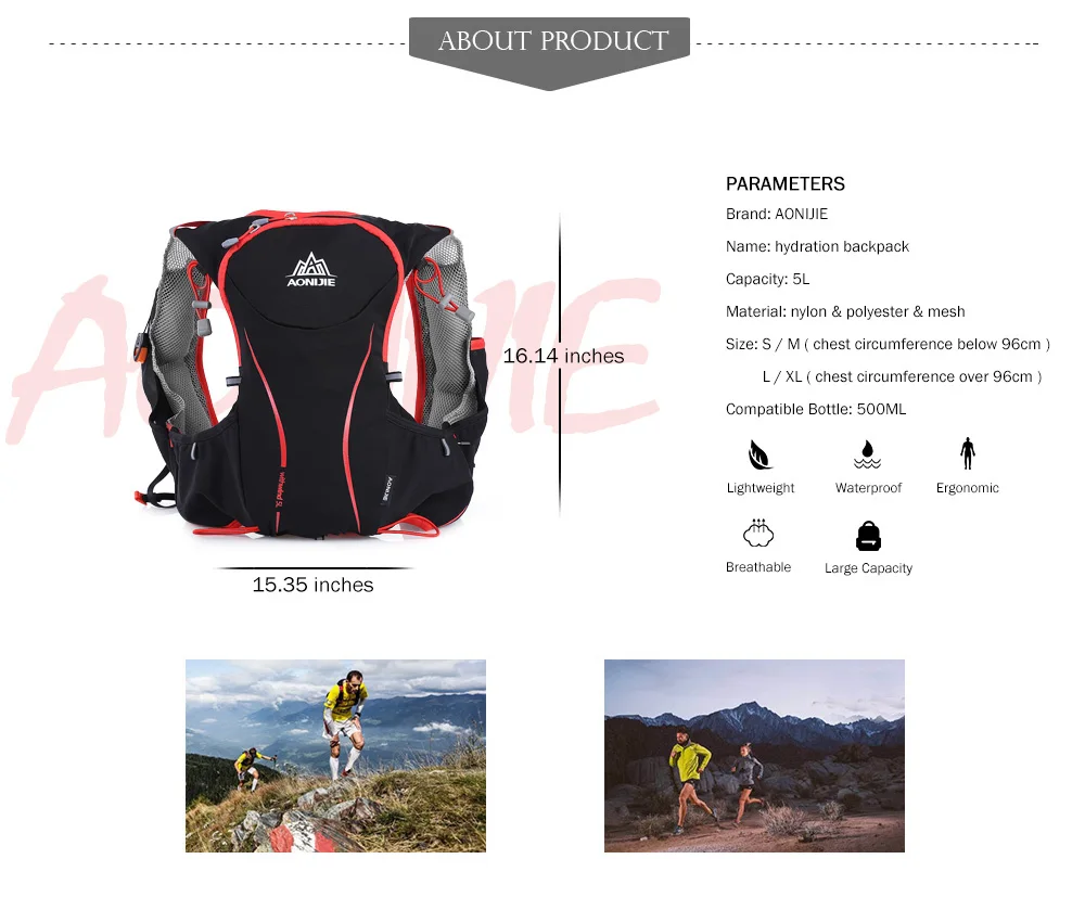About Product: - Capacity: 5L - Bag size ( L x H ): 39 x 41cm / 15.35 x 16.14 inches - Chest circumference: below 96cm ( S / M ); over 96cm ( L / XL ) - The maximum loading weight: 10kg - Material: polyester?? nylon cloth and mesh