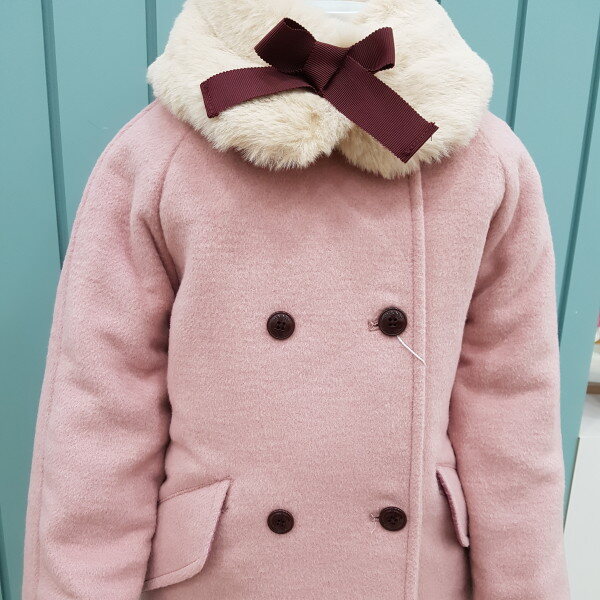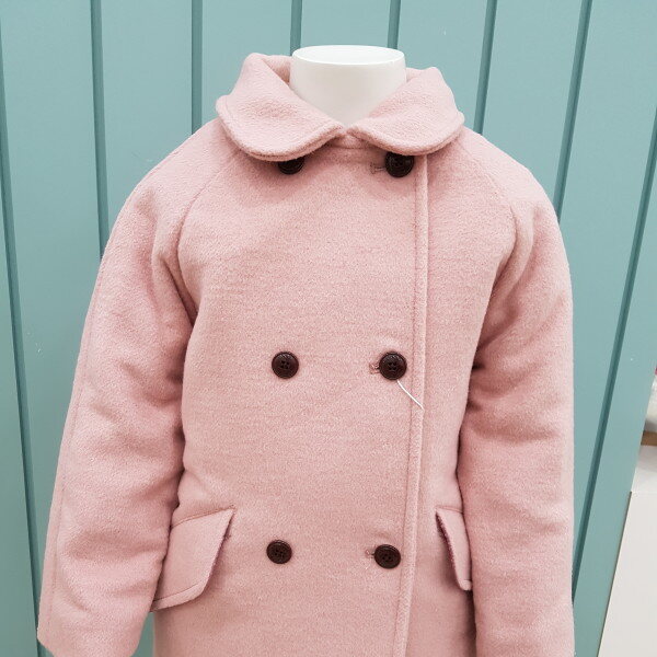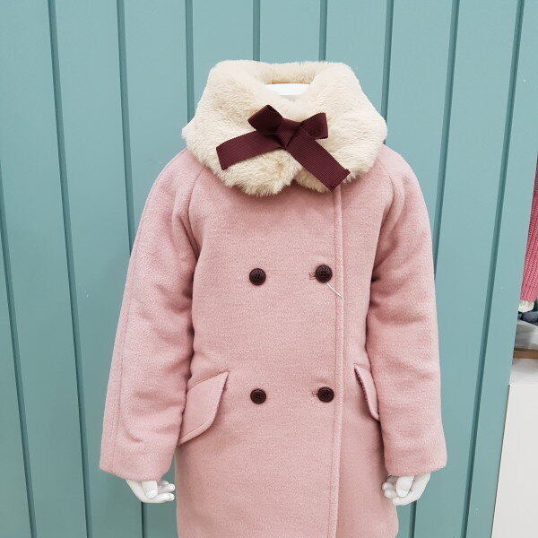 더블버튼의 클래식한 목퍼 탈부착이 가능한핑크 코트