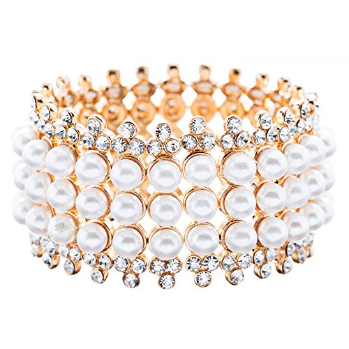 -. Title : ACCESSORIESFOREVERブライダルウェディングジュエリー魅力的な3行パールクリスタルストレッチファッションブレスレットGo