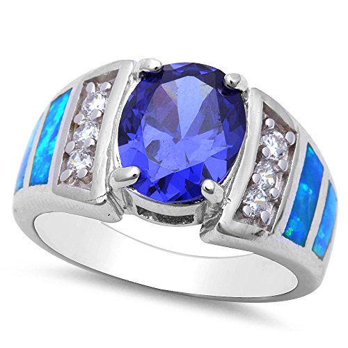 -. Title : Simulated Tanzanite, Lab Created Blue Opal, & Cz .925 Sterling Silver Ring SIZES 6-10